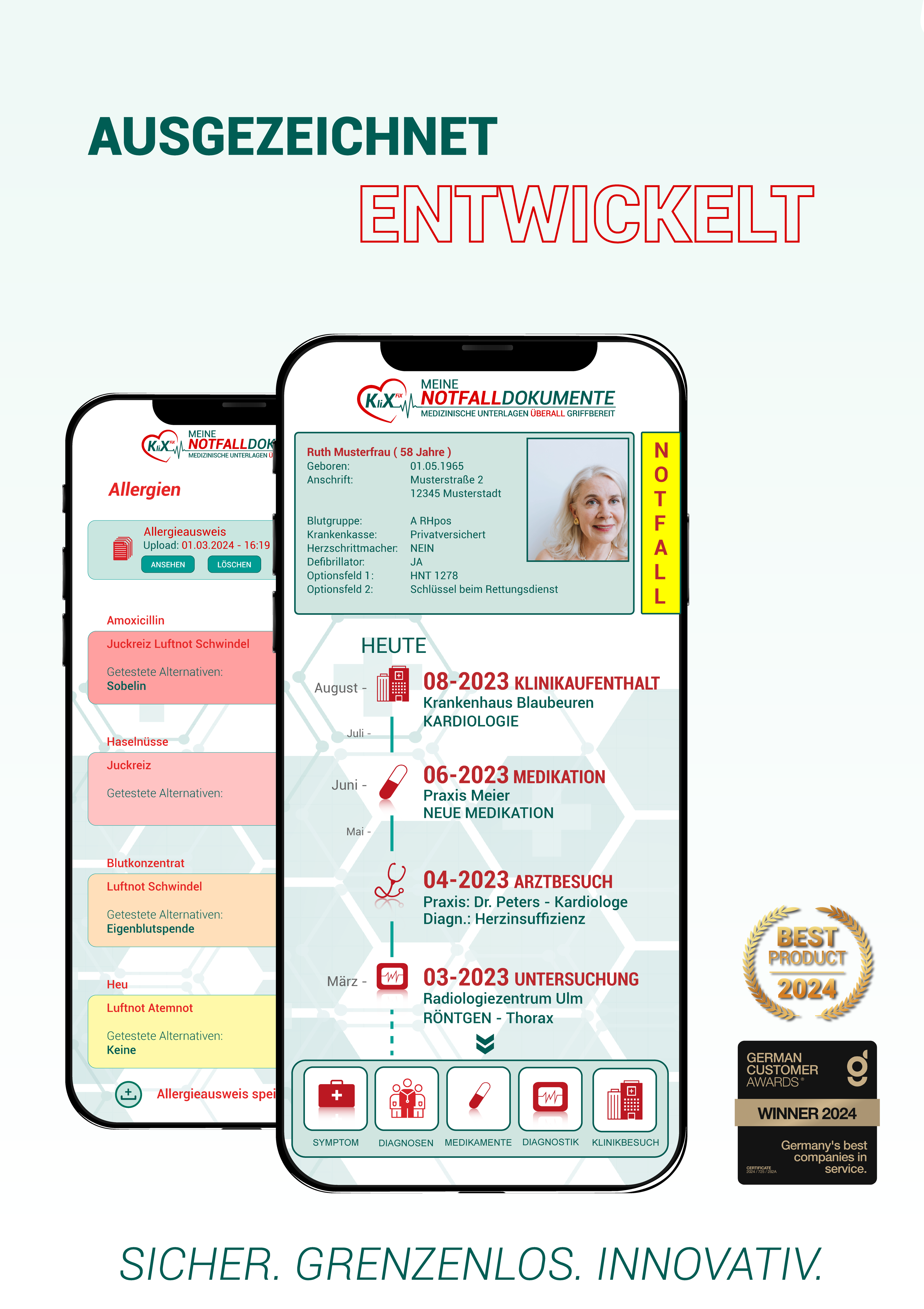 Die KliXFiX WebApp bietet einzigartige Vorteile für die Notfallversorgung. Sie ist unabhängig von Hardware und ermöglicht jederzeit weltweiten Zugriff auf wichtige medizinische Informationen. Ein herausragendes Merkmal ist, dass Nutzer kein Smartphone benötigen und ihre Daten im Notfall automatisch verfügbar gemacht werden können. Die WebApp bietet eine benutzerfreundliche und sichere Plattform, die speziell entwickelt wurde, um Rettungskräften sofortigen Zugriff auf lebenswichtige Unterlagen zu ermöglichen. Sie verbindet höchste Datensicherheit mit einfacher Bedienung und verbessert damit maßgeblich die Notfallversorgung.