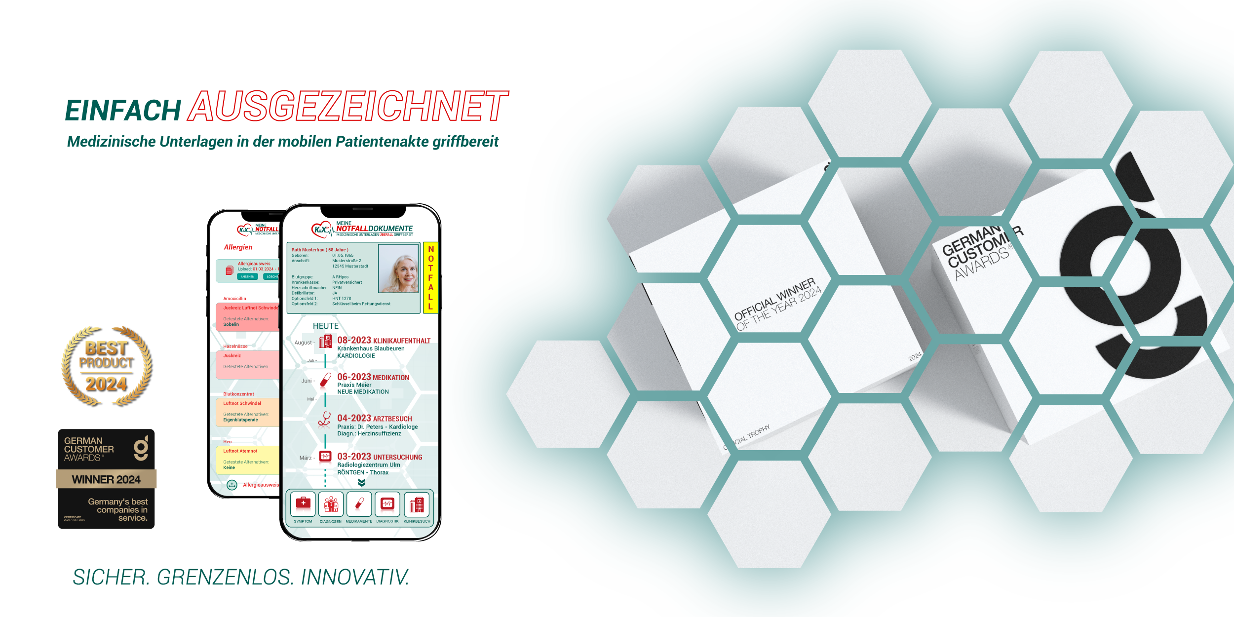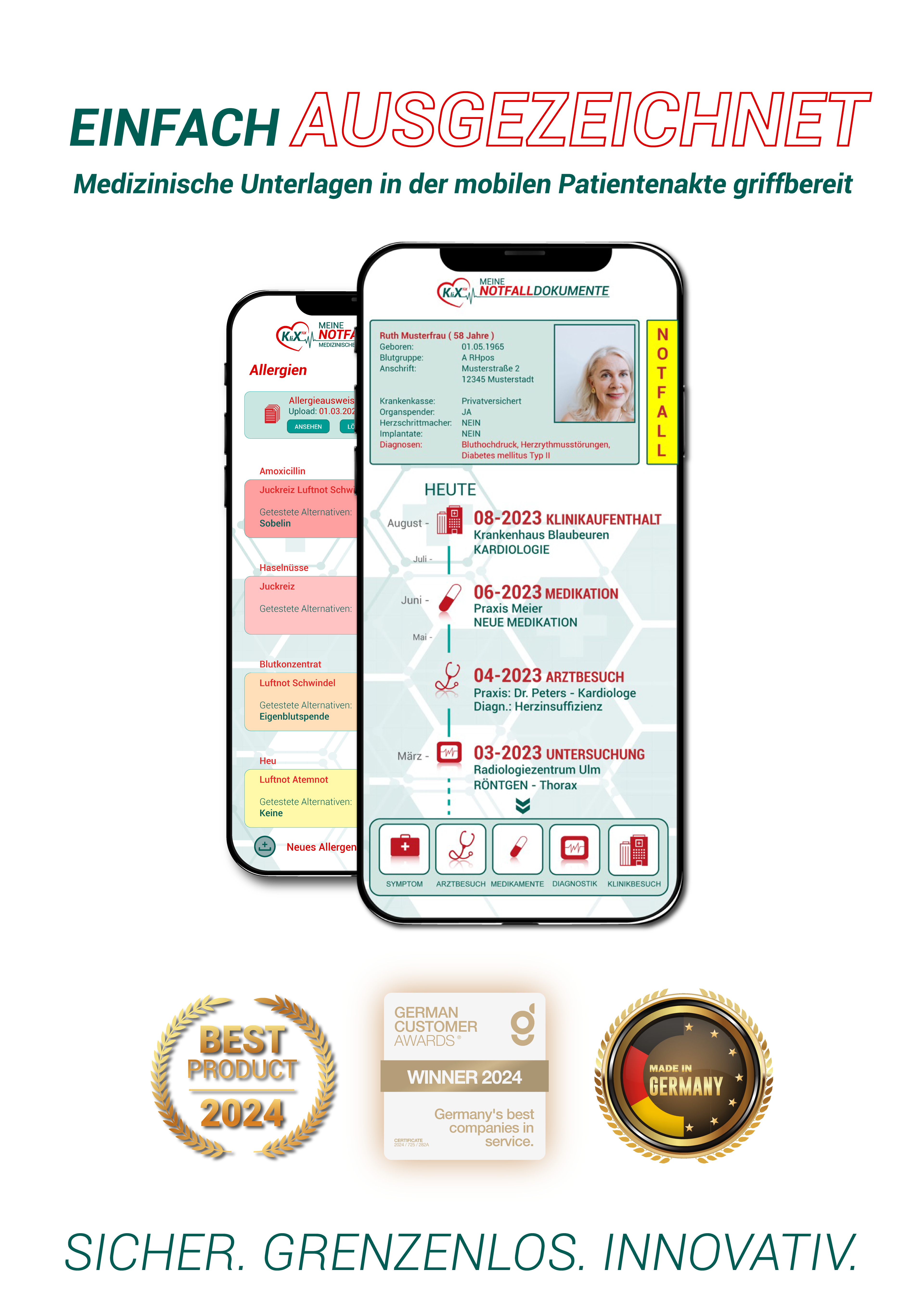 “KliXFiX ist für meine Familie und mich eine große Erleichterung! Gerade bei Allergien und Vorerkrankungen ist es beruhigend, dass der Rettungsdienst sofort alle relevanten Informationen hat. Super Idee und tolles Konzept!”